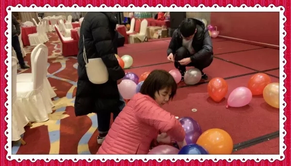 跳了,唱了,接下来的是一个小游戏《鼠来宝》,猜猜是谁最先把盒子里的乒乓球全部抖出来呢,左边那位同事,当心你的腰。