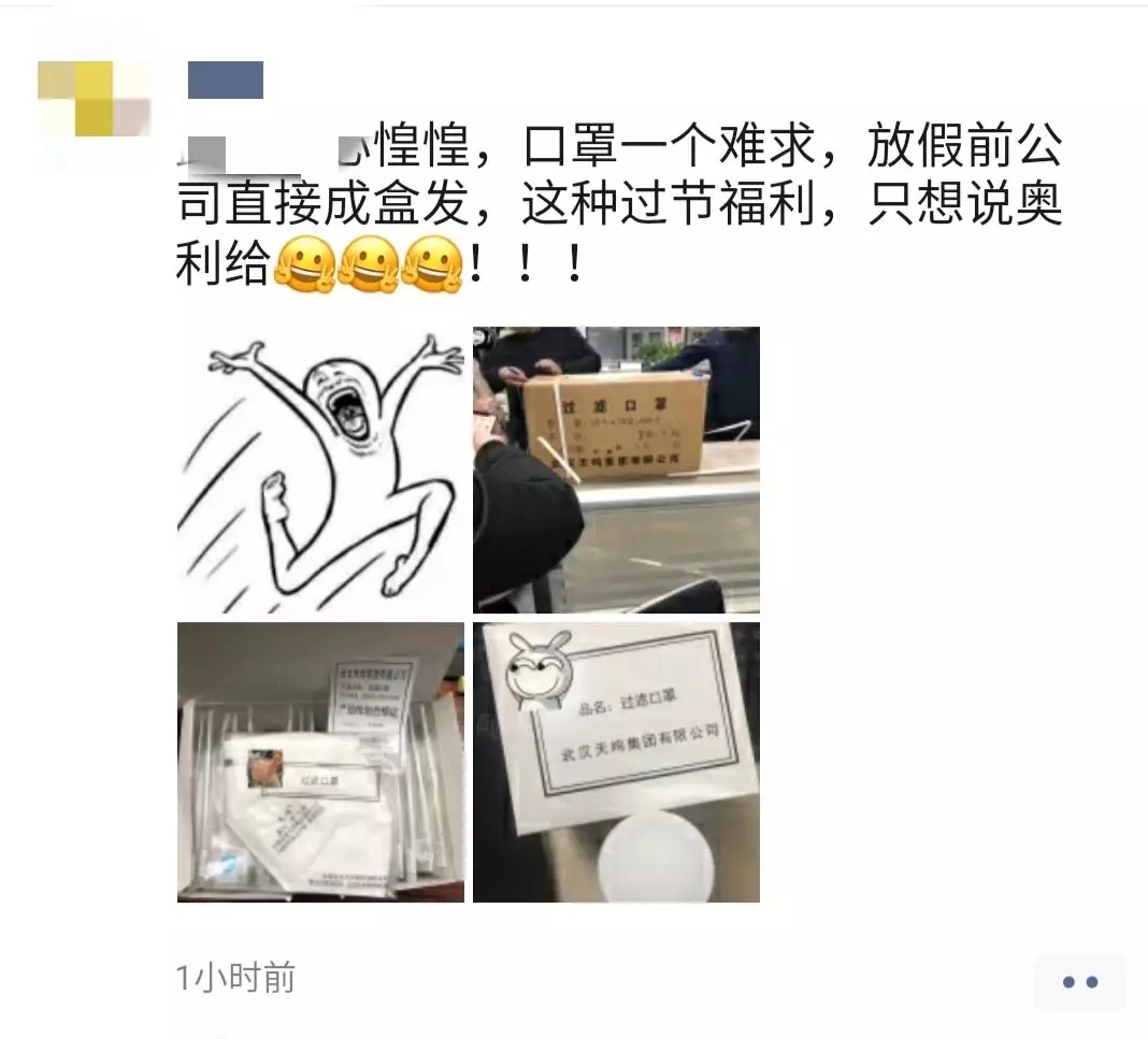 “这口罩发的真及时,感谢公司对员工的关爱。”近日,受武汉市等多个地区发生新型冠状病毒感染的肺炎疫情影响,部分区域出现口罩等防控保障用品热销现象。1月21日下午,春节前上班最后一天,公司给在工业园的员工每人免费发放一整盒KN95防护口罩,希望大家能过一个平安祥和的新年。这样暖心的举措让大家都高喊给力,直呼这是最珍贵的新年福利,瞬间刷爆了朋友圈。