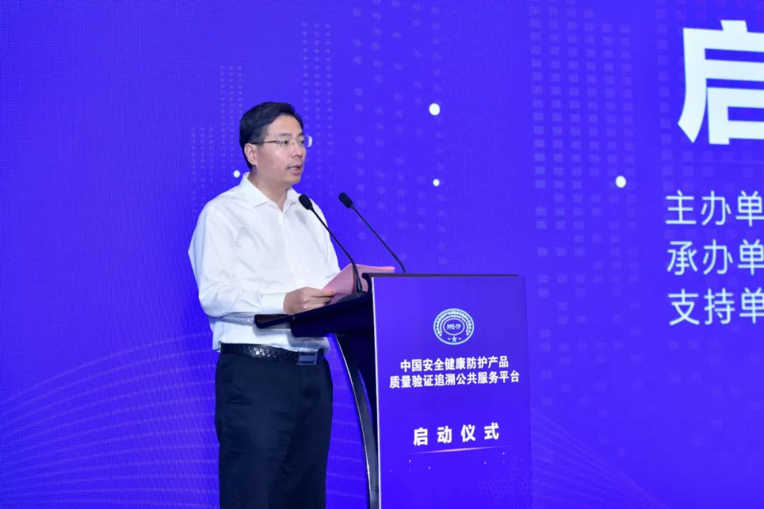 与会领导共同启动中国安全健康防护产品质量验证追溯公共服务平台。